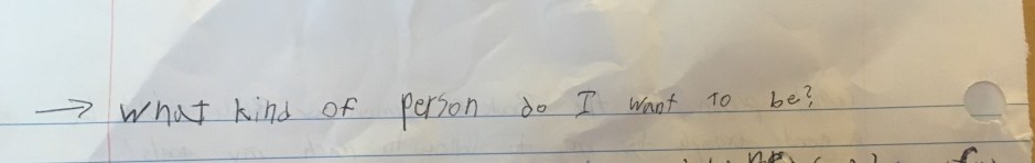 Still feeling like I didn’t know what I was doing but with hopes that my kids could see the bigger picture I started putting together an an idea. I got out three pieces of paper, one for each child involved. I talked to each of them individually and gave them their assignment. I asked each child do write down the question, “What kind of person do I want to be?”