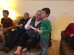 Jack showed up in the dining room having been dressed up by Max and said, “I’m here!” Then more kids joined in the fun.